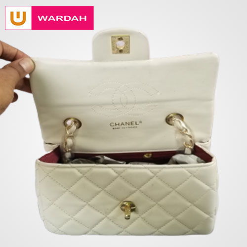 This bag is from the world-famous brand Chanel. This is a first-grade replica bag. Imported from China. It’s made with high-quality soft PU leather. It has one main chamber with three pockets. It has a long shoulder strap, which made of leather with a golden color metal chain. This is a small size bag. This bag came with a channel gift box and dust cover.